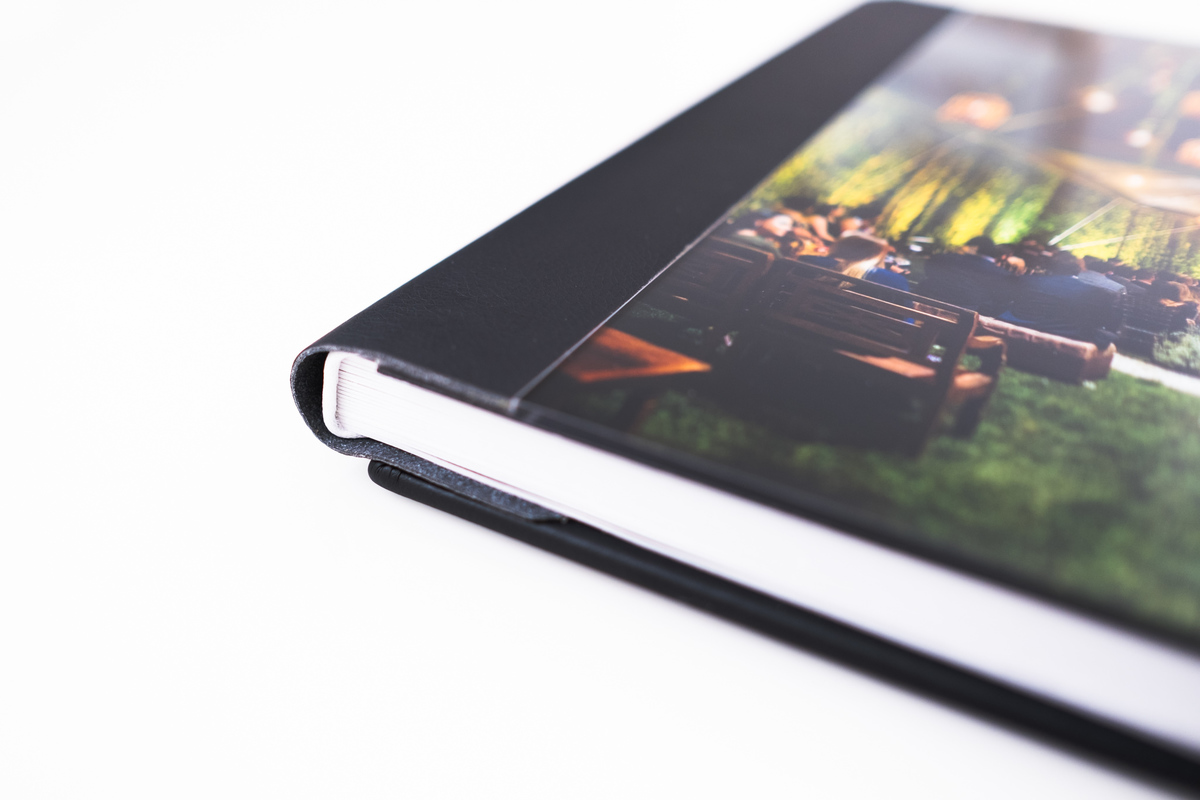 Álbum impresso em papel importado em São Paulo, com alta gramatura, medindo 30x60cm aberto com capa em acrílico e caixa em tecido.