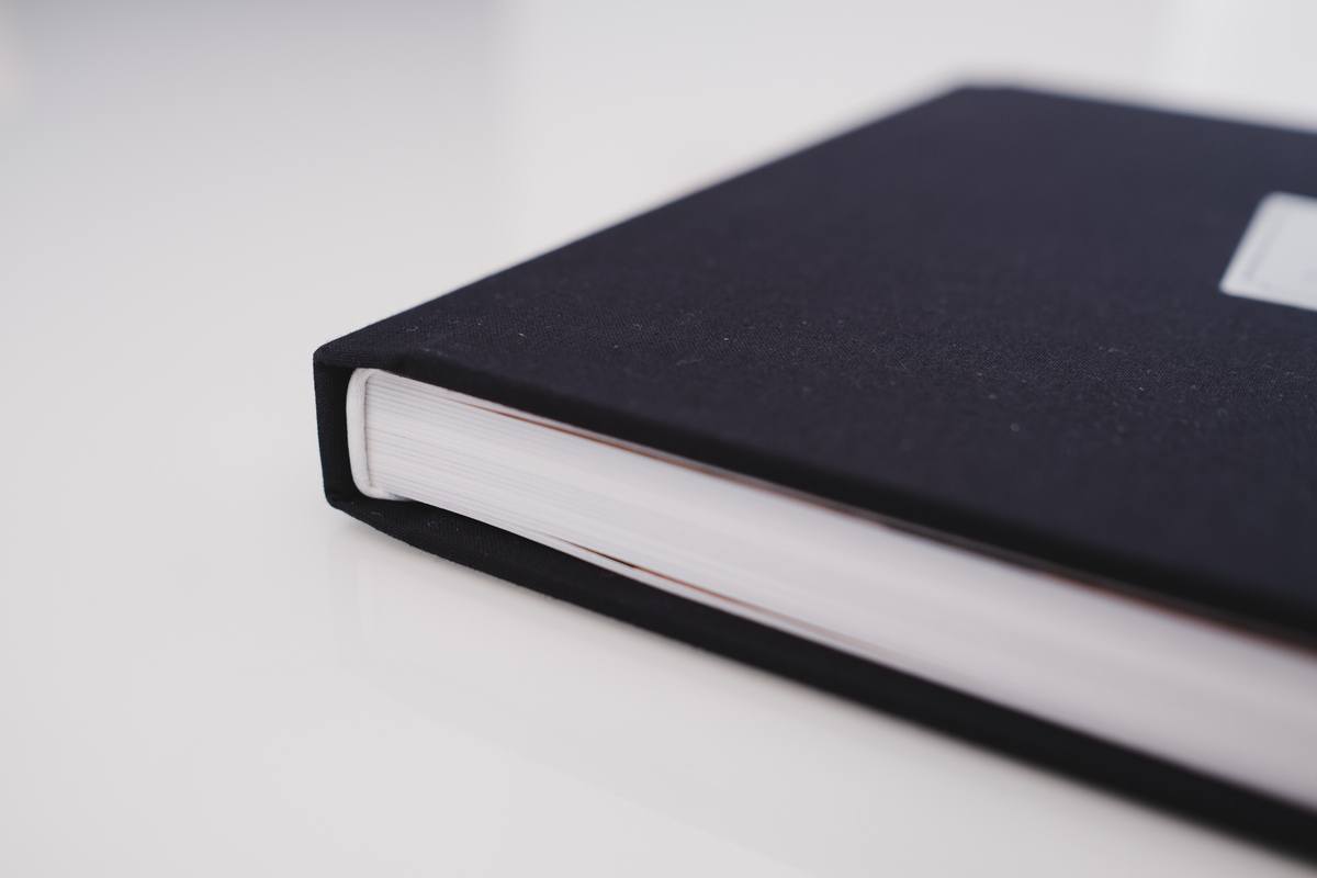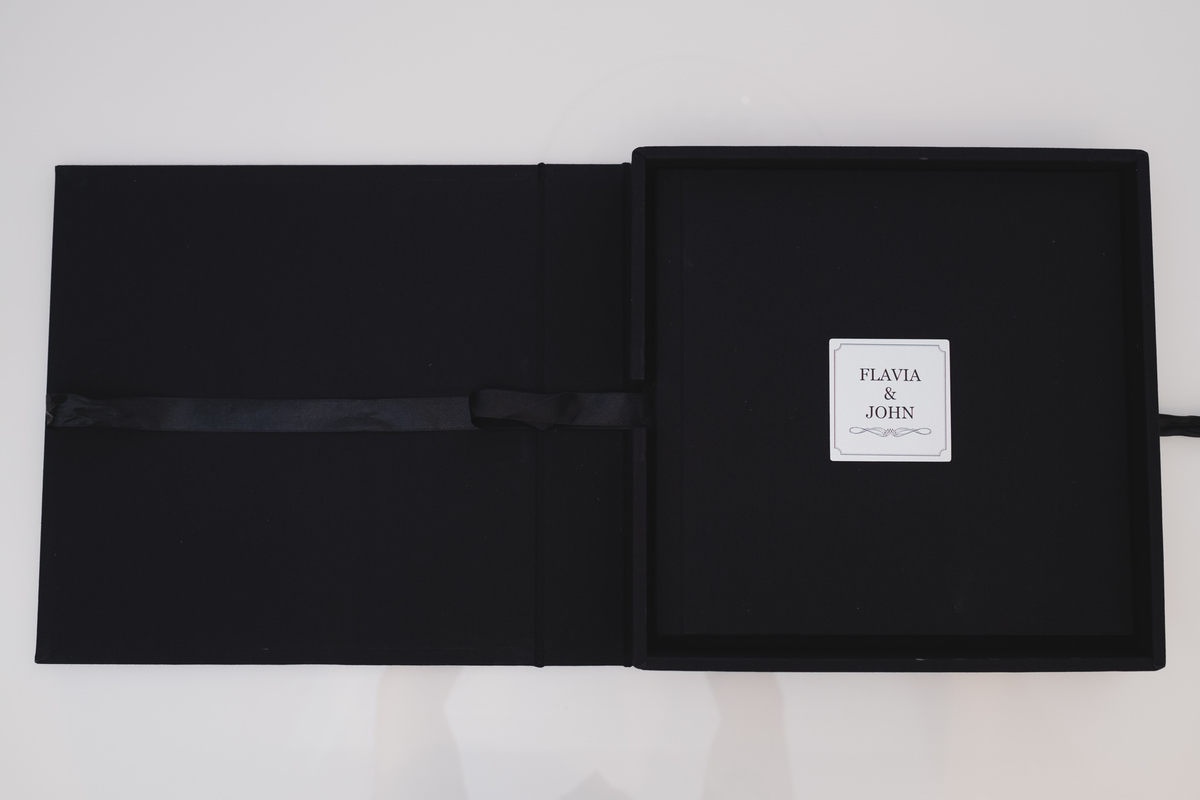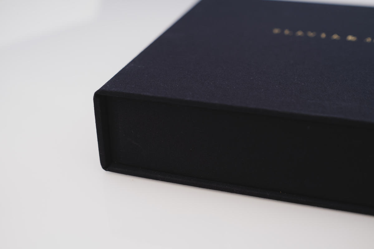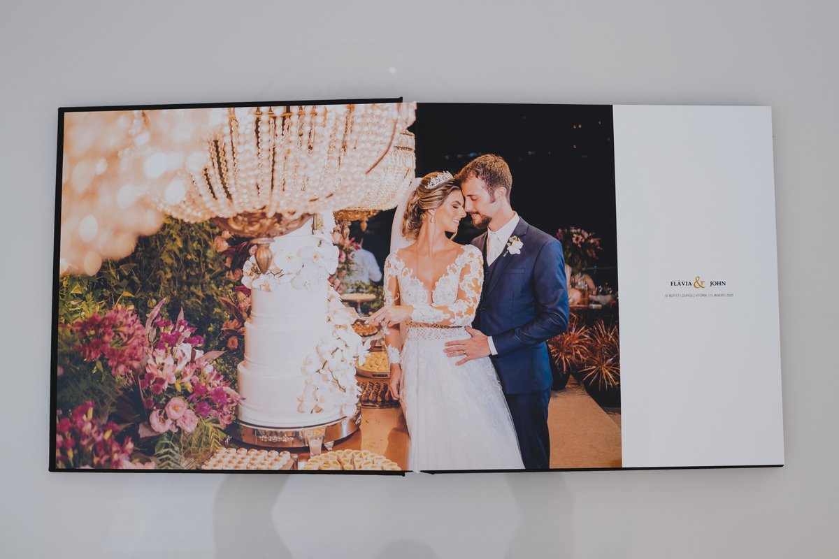 Álbum impresso com papel importado em São Paulo, medindo 30x60cm aberto, com capa e caixa em tecido.