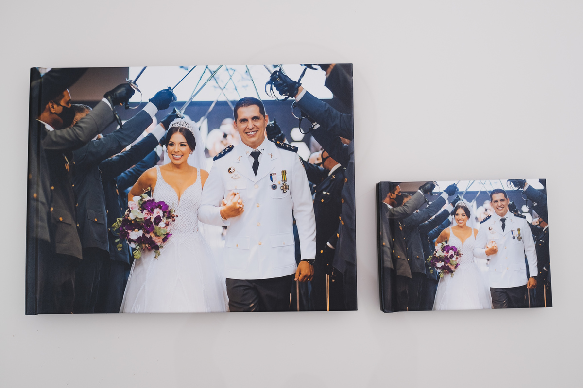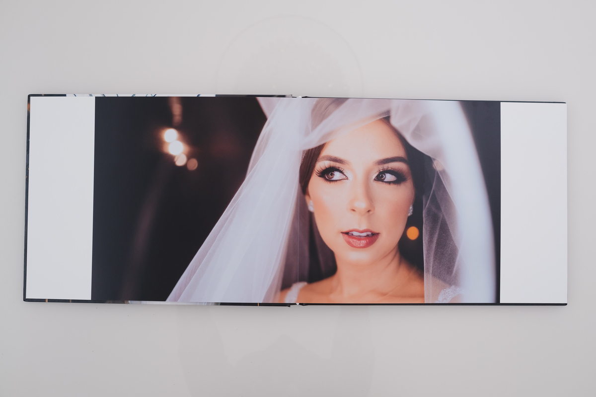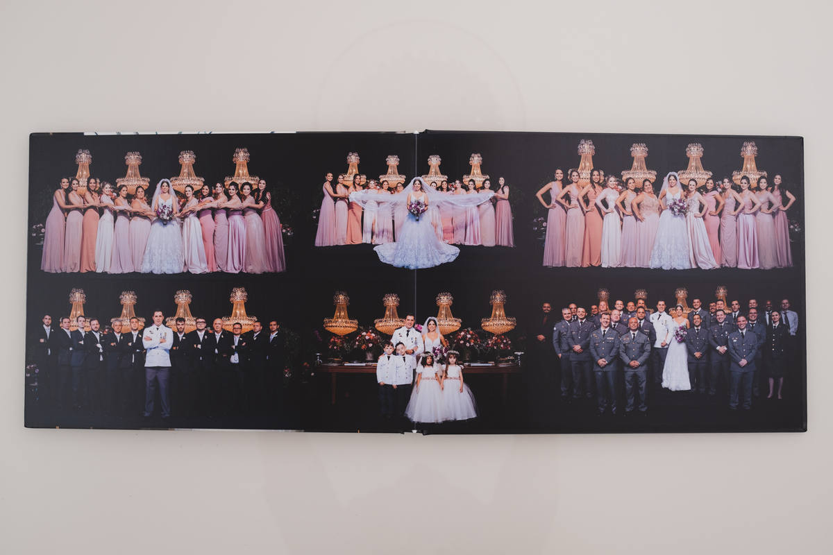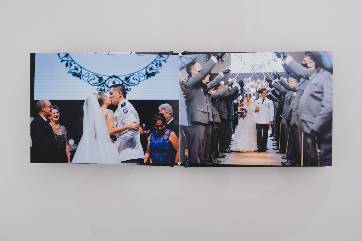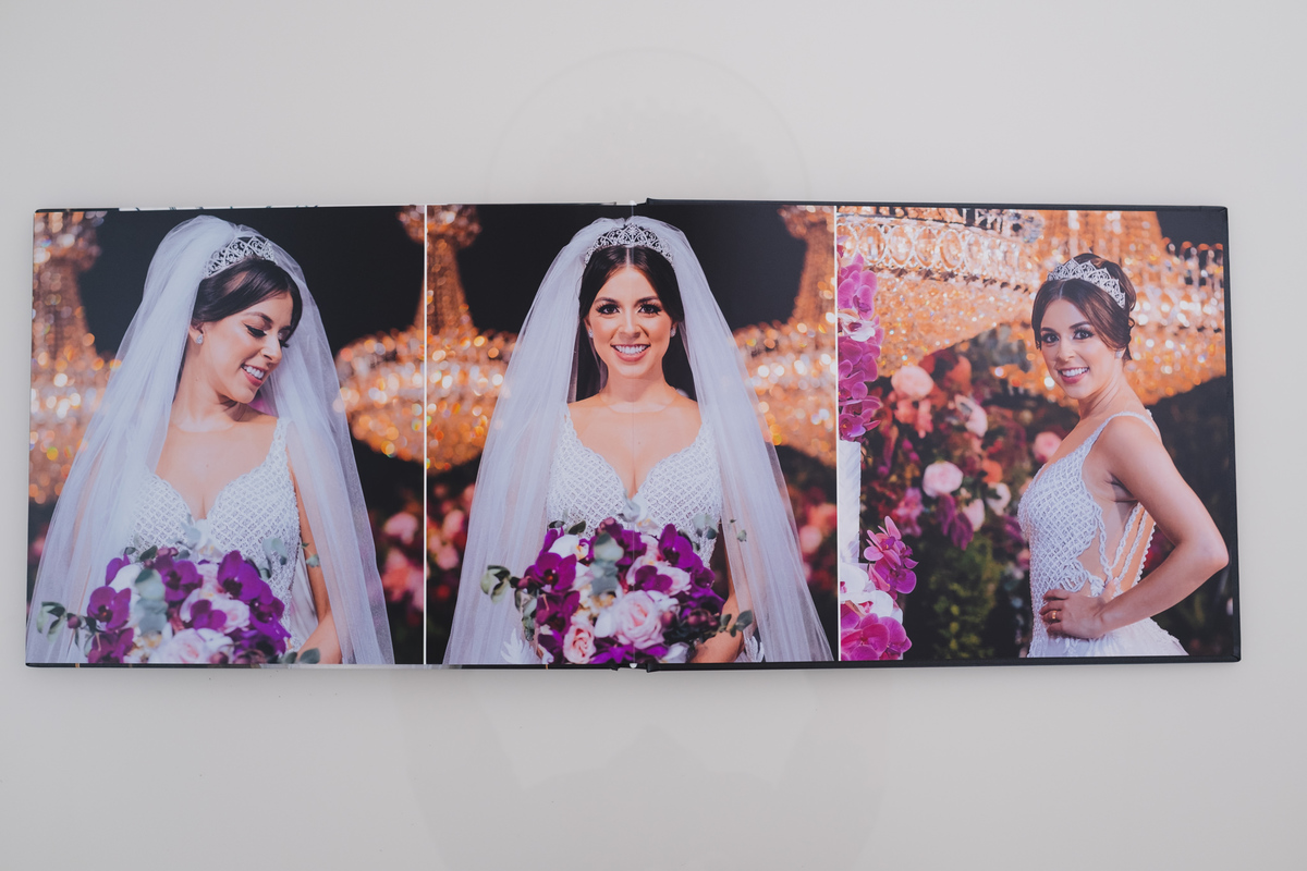Álbum impresso em papel importado de alta gramatura em São Paulo, medindo 30x80cm aberto.